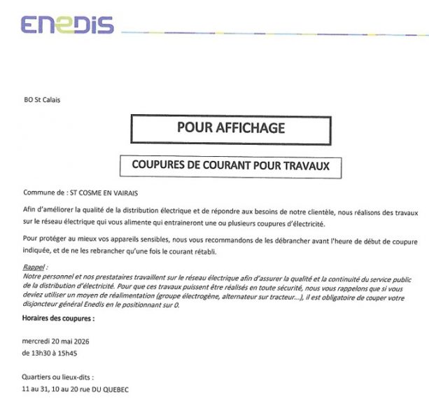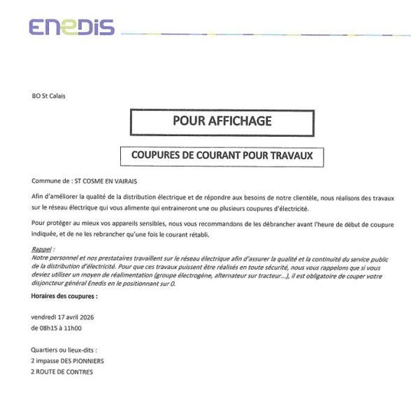 Infos pratiques & ContactsAvis de coupure de courant pour travaux