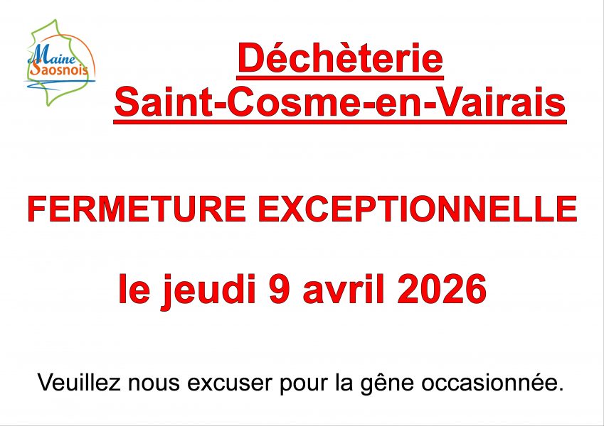 Infos pratiques & ContactsFermeture exceptionnelle de la déchèterie de Saint Cosme jeudi 9 avril